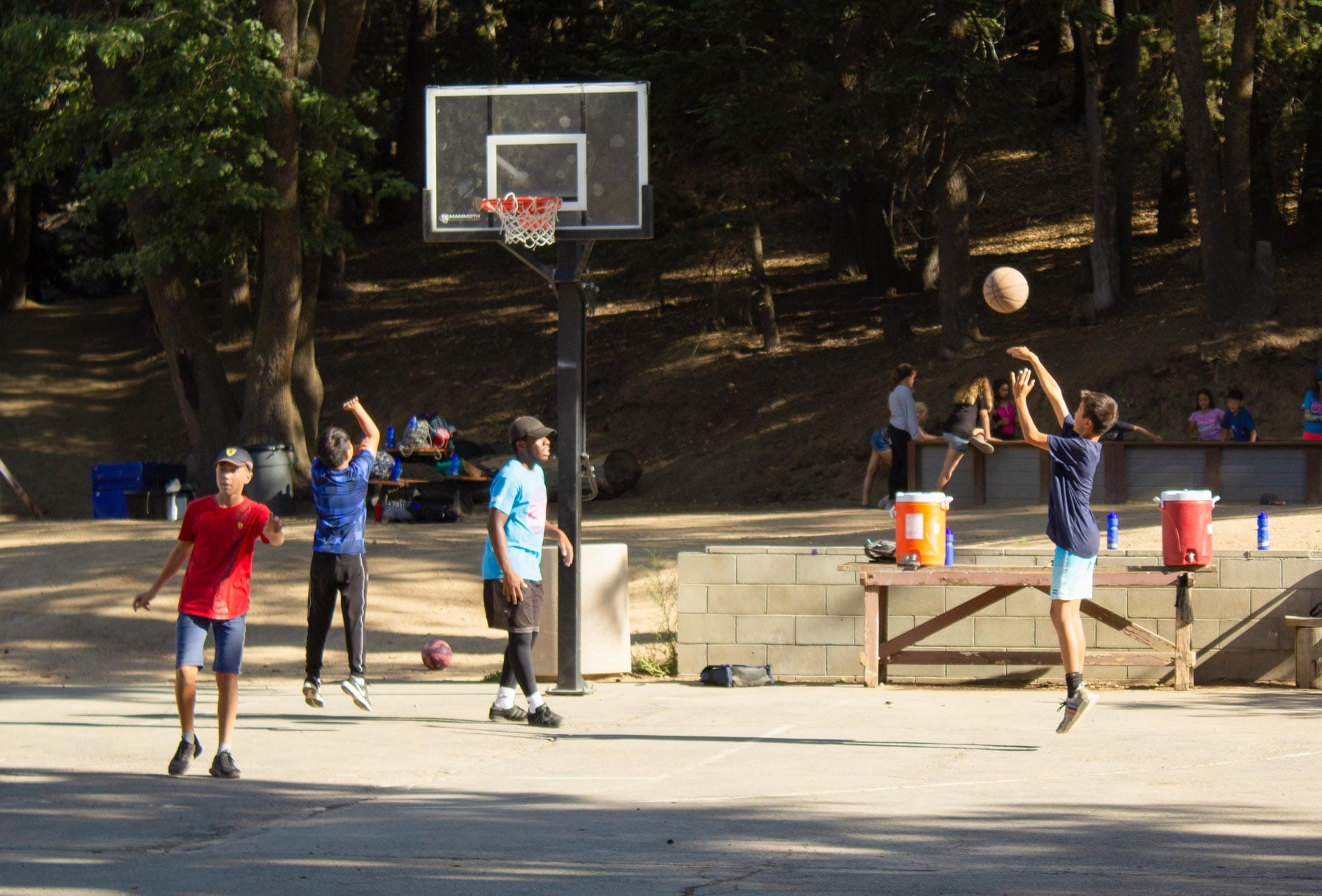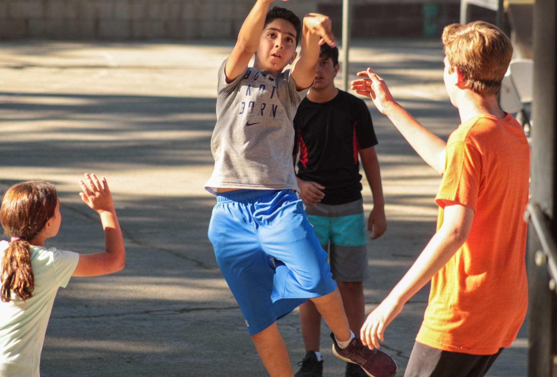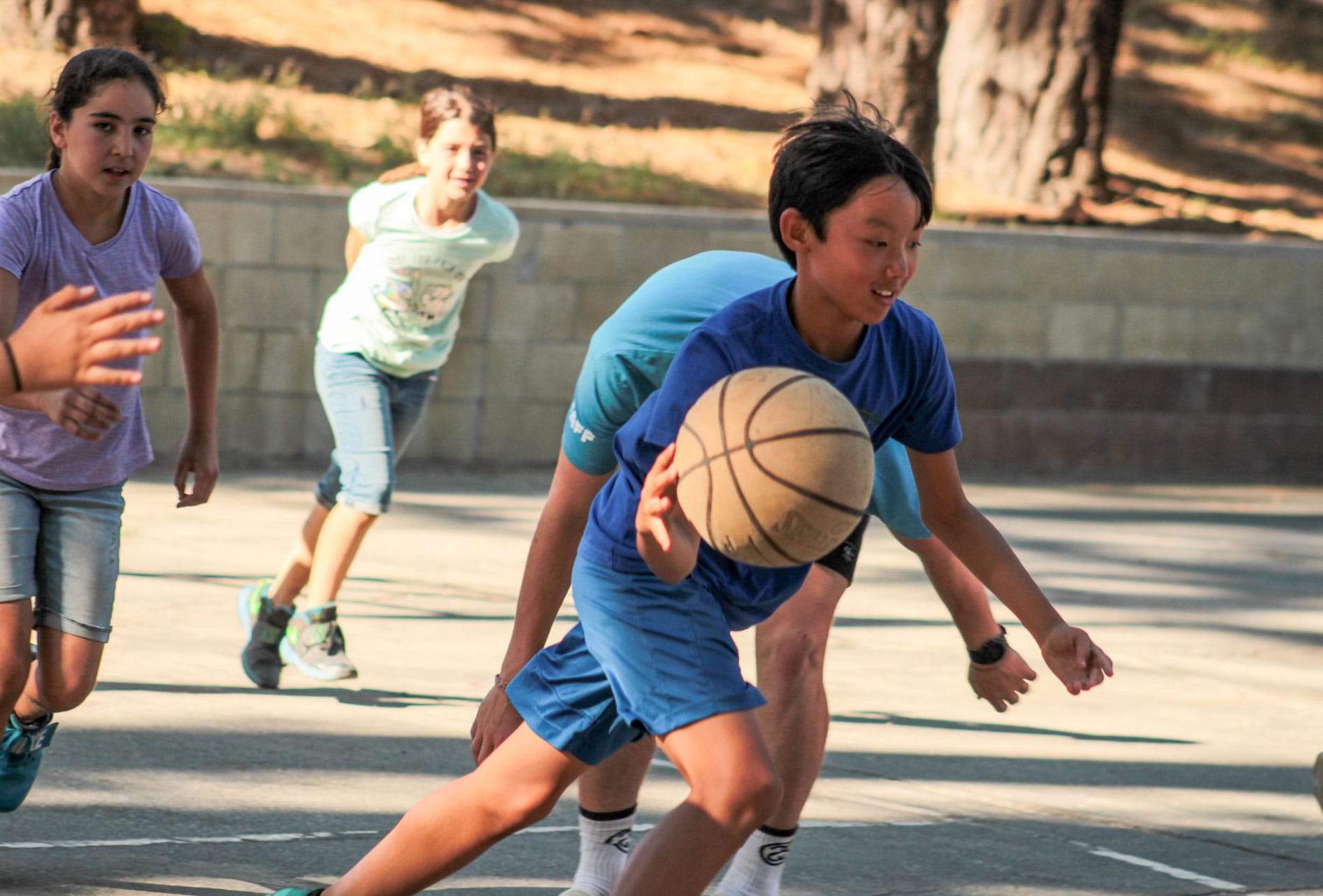 We love to encourage campers to play basketball on our outdoor blacktop court because it really gets them moving! No experience is necessary here: basketball is recreational and all about having a good time playing with your friends.