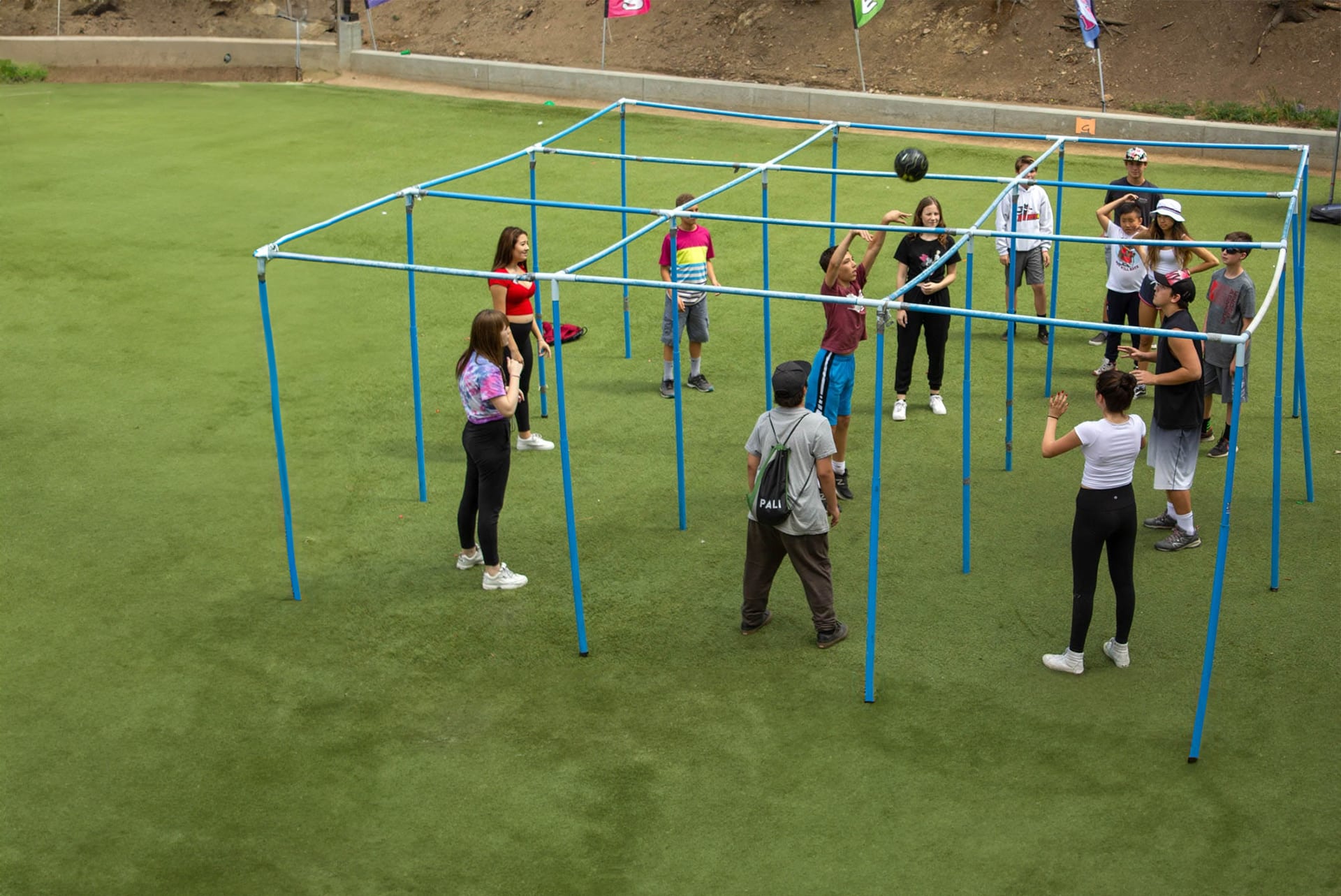 This is a fun variation of the traditional Four-Square with two crucial twists: there are 9 squares, and the ball is kept in the air instead of the ground! The goal is to reach the center and stay there as long as you can!